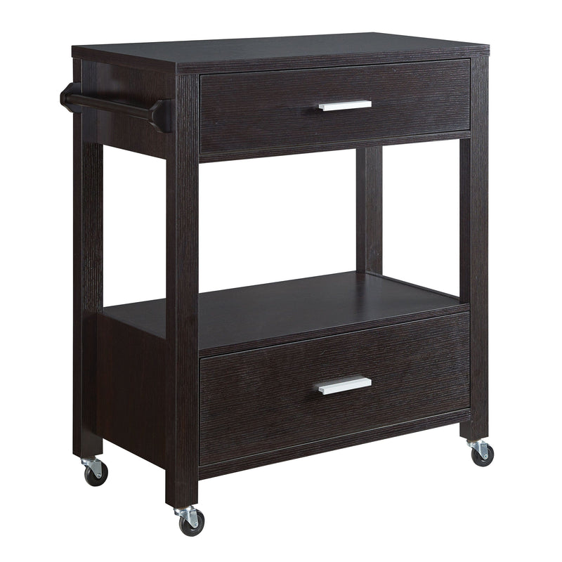 Homeroots Brown Solid Wood Top Kitchen Island with Two Tier Black Metal Rolling
